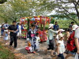 13時にみかげ台公園から出発した 山車神輿練り歩きが、夏祭り本会場であるちはら台公園に到着し、花火を合図に、祭りの始まりです。